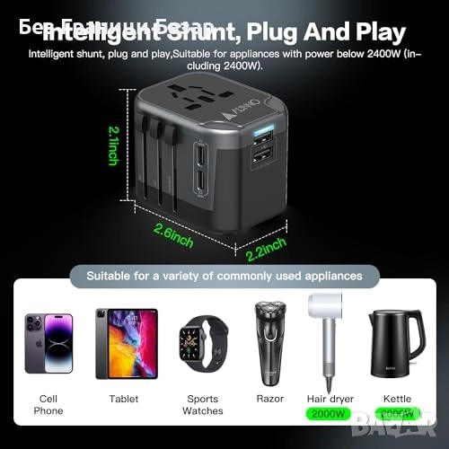 Нов Универсален адаптер за пътуване с 4 USB порта – 150+ държави Travel Plug