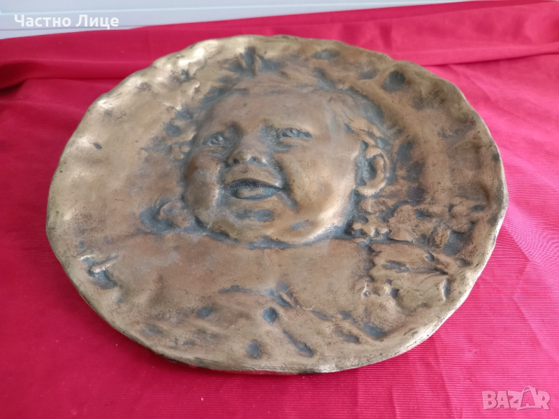 Много Красиво Авторско Масивно Бронзово Пано "Смеещо се Момченце" Автор Emile Derre ,19 Век .Подписано.
