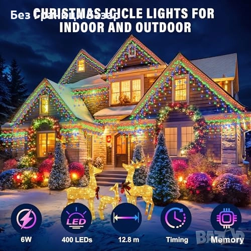 Нови Коледни висулки 400 LED RGB, 8 режима, външни, водоустойчиви светлини