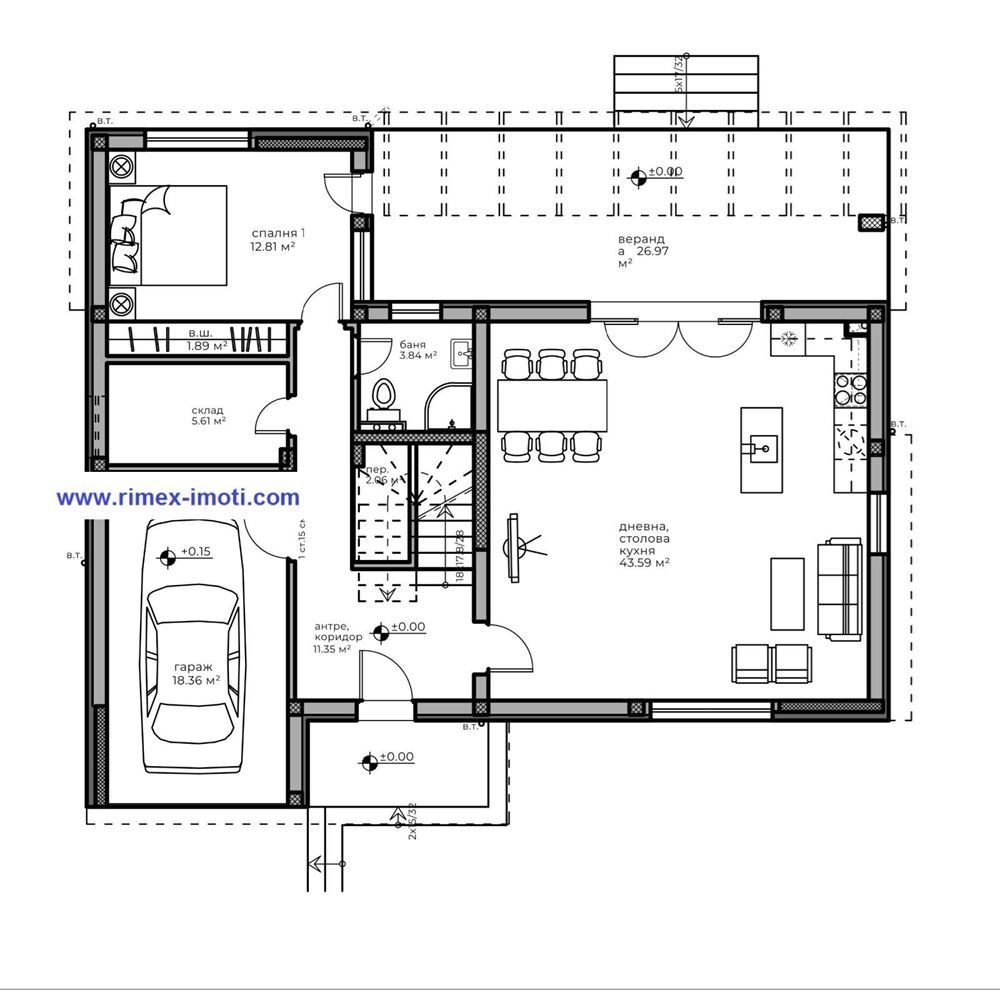 Просторна дневна с кухня и трапезария