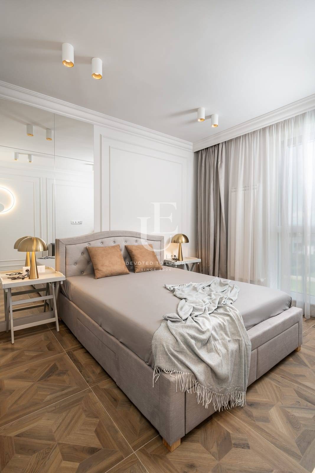 Апартаментът се предлага обзаведен по дизайнерски проект и е отлично завършен без компромис с качеството на използваните материали. Интериорният дизайн е шедьовър на съвременната естетика, с отворено и плавно оформление, което увеличава максимално пространството, естествената светлина и безпроблемните преходи между жилищните зони.