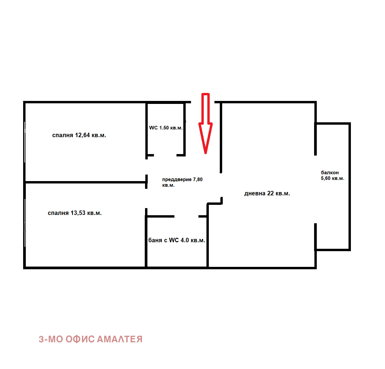 Разпределението на жилището е следното: