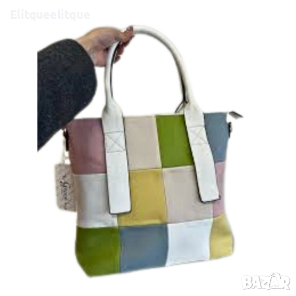 Шарена дамска чанта с разноцветна дръжка → Обява 52273208