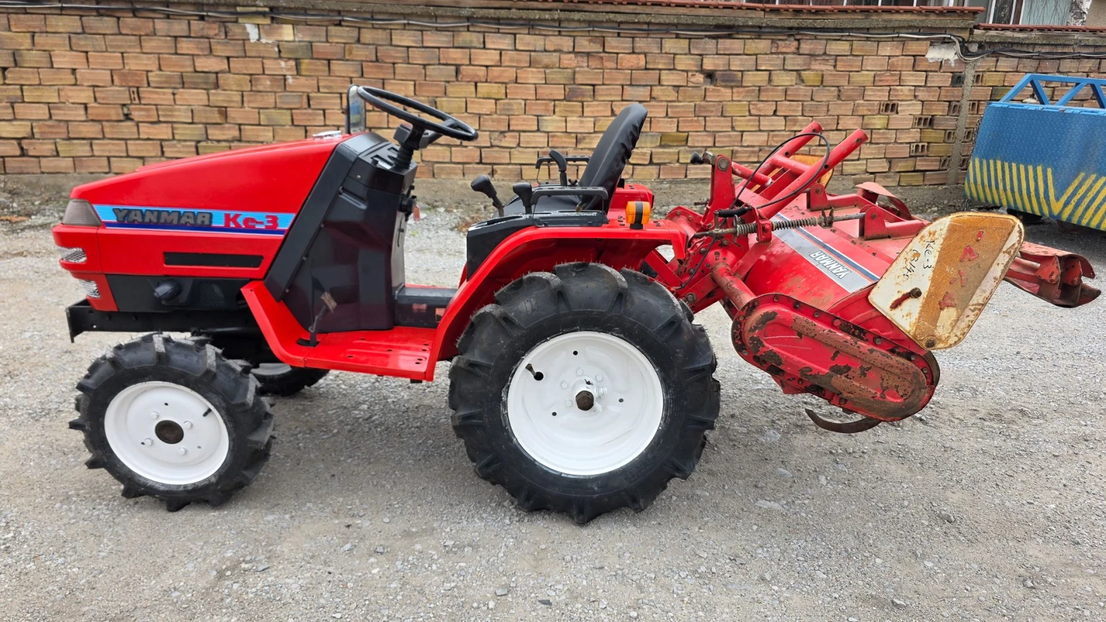 трактор Yanmar KE-3 с фреза. Този модел не се регистрира, тъй като е точно 13, 5 кс (над 13, 6 кс подлежат на регистрация). С 4 чисто нови гуми. 🔧🧰 Напълно рециклиран, с изцяло сервизирани и обслужени двигател, скоростна кутия, ходова част, хидравлика, ел. инсталация и прикачен инвентар. 1 година пълна гаранция на целия трактор. Гаранционен и извънгаранционен сервиз, доставка на резервни части и възможност за лизинг. Подсигурен безплатен транспорт. ⚙️ Характеристики: - Задвижване: 4× 4 с блокаж на диференциала - Мощност: 13, 5 к. с. - Двигател: Yanmar 3TNA68-UNK, 3-цилиндров дизел, 784 cc - Охладителна система: Водно охлаждане - Прикачна система: 2-точкова - Включен инвентар: Ротационна фреза - Екстри: Хидравлична система за следене на дълбочината на фрезоване. АграБГ Джолев - директен вносител на употребявани и самoстоятелно рециклирани Японски малогабаритни трактори Kubota, Yanmar, Iseki, Mitsubishi, Hinomoto, Shibaura с мощност 9-60 кс. Всички наши трактори са оборудвани с оригинална японска фреза и са цялостно рециклирани и напълно обслужени, което е гаранция за дългогодишна и безпроблемна работа на машината. Една година ПЪЛНА гаранция на всеки закупен от нас трактор. Разполагаме с големи наличности от първокачествени Японски трактори на разумни цени. Предлагаме пълен гаранционен и извънгаранционен сервиз на предлаганите от нас машини, както и множество резервни части на склад. Собствен безлихвен лизинг и подсигурен транспорт. Също така разполагаме и с големи наличности от разнообразен прикачен инвентар.