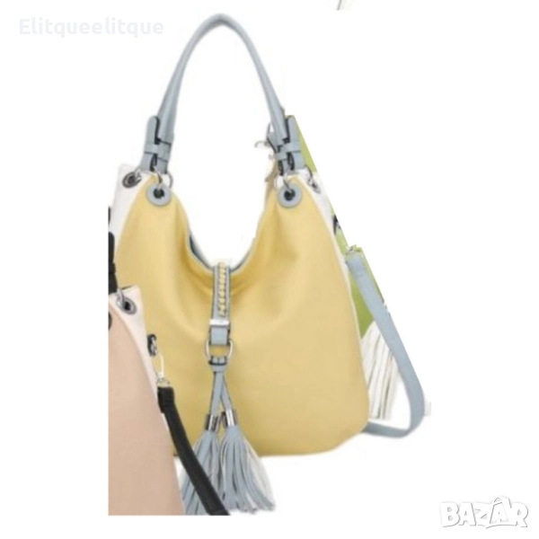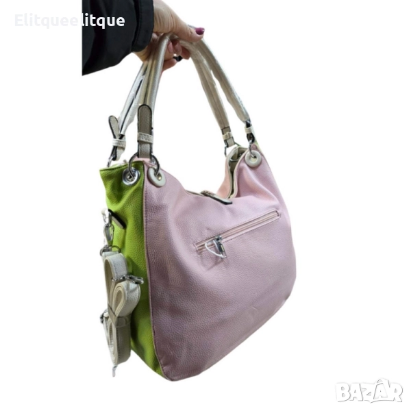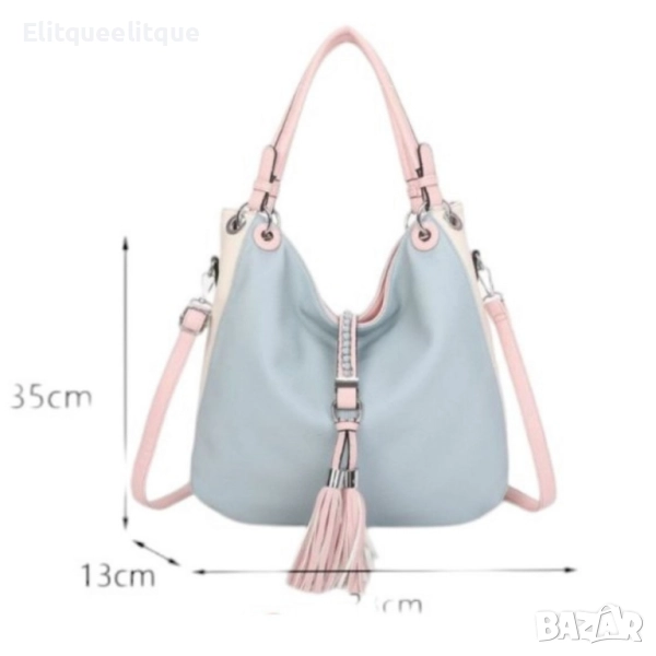 Размери: 32 × 14 × 35 см; Материал: Еко кожа; Тип затваряне: Цип; Прегради: 2 отделения, преграда с цип, вътрешни и външни джобове; Дръжки: 1 къса и 1 дълга регулируема презрамка; Цветове: Розова, бяла, светло бежова, синя, бежова, жълта, зелена, черна.