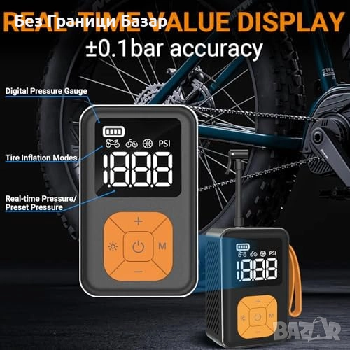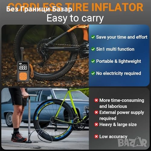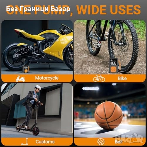 Подходяща за Presta и Schrader вентил, велосипеди, е-байкове, мотори, топки