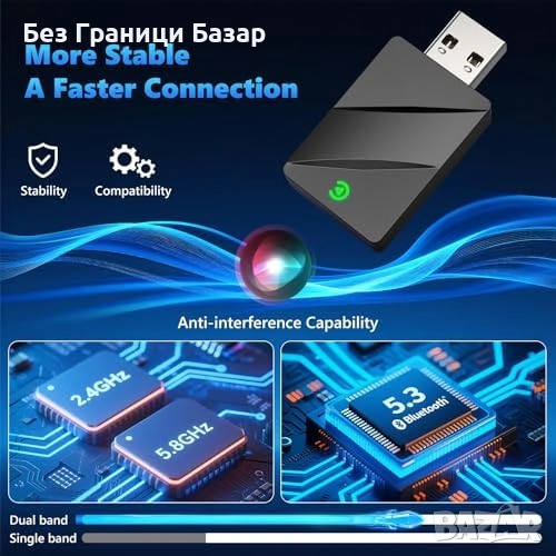 Plug & Play инсталация – включва се в USB порта и се свързва автоматично при следващо стартиране