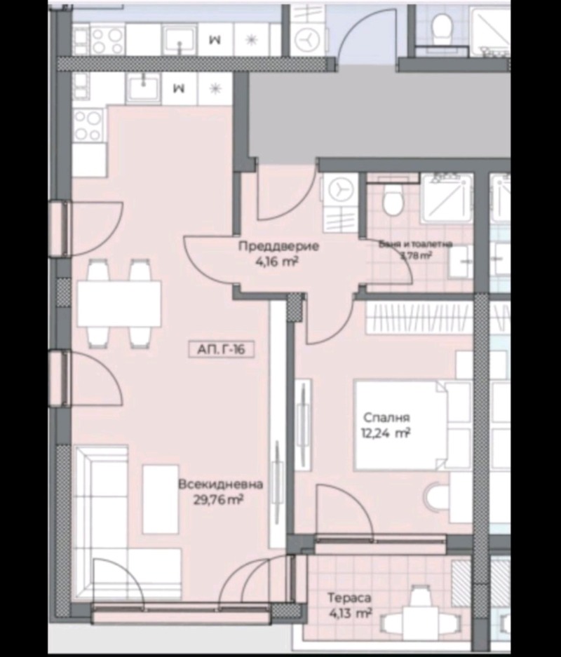 Просторен хол с трапезария и кухненски бокс 29,76 кв.м.