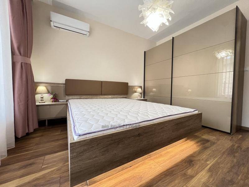 Предлагаме на Вашето внимание чисто нов двустаен апартамент, находящ се в центъра на града. Перфектно обзаведен и оборудван! Разположен в нова сграда с луксозни общи части. Разпределение: слънчева всекидневна с кухня, спалня с тераса, баня с тоалетна, инверторни климатици. Готов за нанасяне веднага!