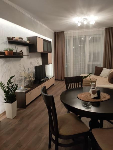 Предлагаме Ви под наем тристаен апартамент в нова жилищна кооперация в Центъра на гр. Бургас! Напълно обзаведен и оборудван! Разпределение: две спални, голяма всекидневна с кухненски кът, баня и тоалетна, тераса. Отлична локация!