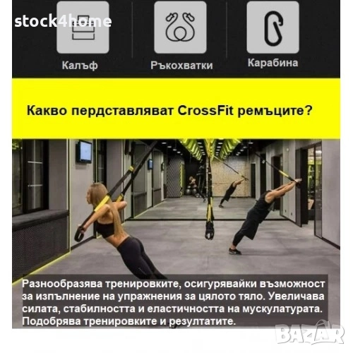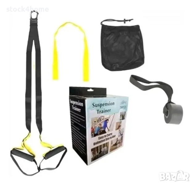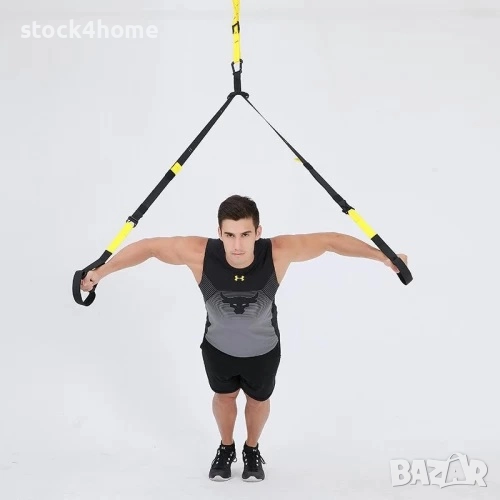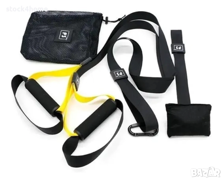 Комплект за фитнес тренировки представляващ ремъци с ръкохватки. С негова помощ ще усъвършенствате и разнообразите тренировките си, увеличавайки силата и резултатите.