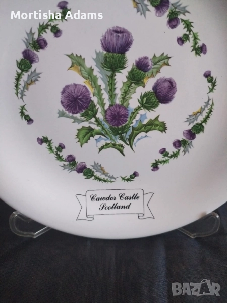 🌿 За любителите на Магарешкия бодил (шотландски национален символ)- керамична сувенирна чинийка, (замъкът Коудър- Шотландия), диаметър 16,5см., чудесно състояние.