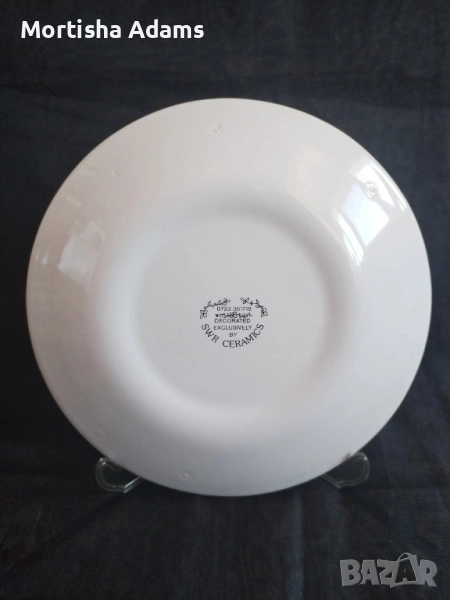 Чинията е произведена от S.W.R. Ceramics Limited- компания в Обединеното кралство, регистрирана през 1995 г. и работеща в сферата на керамиката.