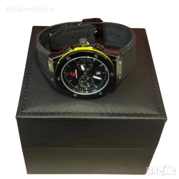 Механизъм: Кварцов; Материал на корпуса: Неръждаема стомана; Материал на каишката: Висококачествена к о ж а; Функции: Хронограф, секундарник; Водоустойчивост: До 3 ATM (защита от пръски и дъжд); Гаранция: 12 месеца.