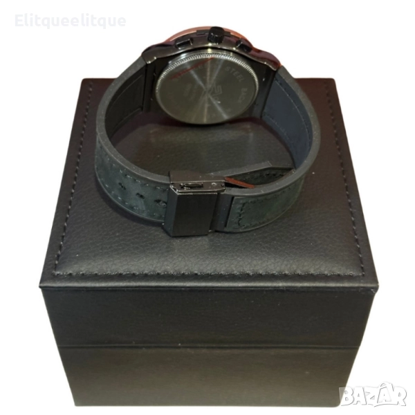 Механизъм: Кварцов; Материал на корпуса: Неръждаема стомана с PVD покритие; Циферблат: Хронограф с минерално стъкло; Каишка: Кожена с метална закопчалка; Водоустойчивост: Подходящ за ежедневно носене; Гаранция: 12 месеца.