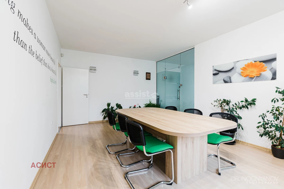Помещението се състои от кабинета, офис, рецепция, приемна, баня с тоалетна, отделна втора тоалетна с мивка и две тераси. Обектът се отдава под наем с цялото налично оборудване и техника.