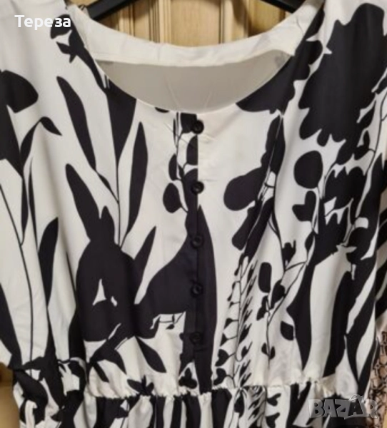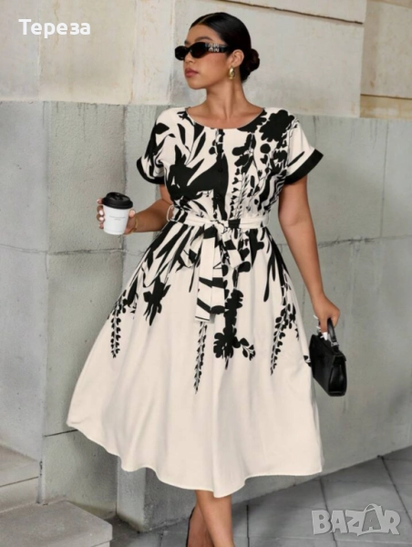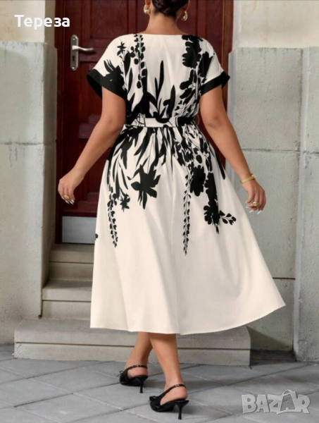 🌸Елегантна ежедневна рокля с овално деколте и флорални щампи.