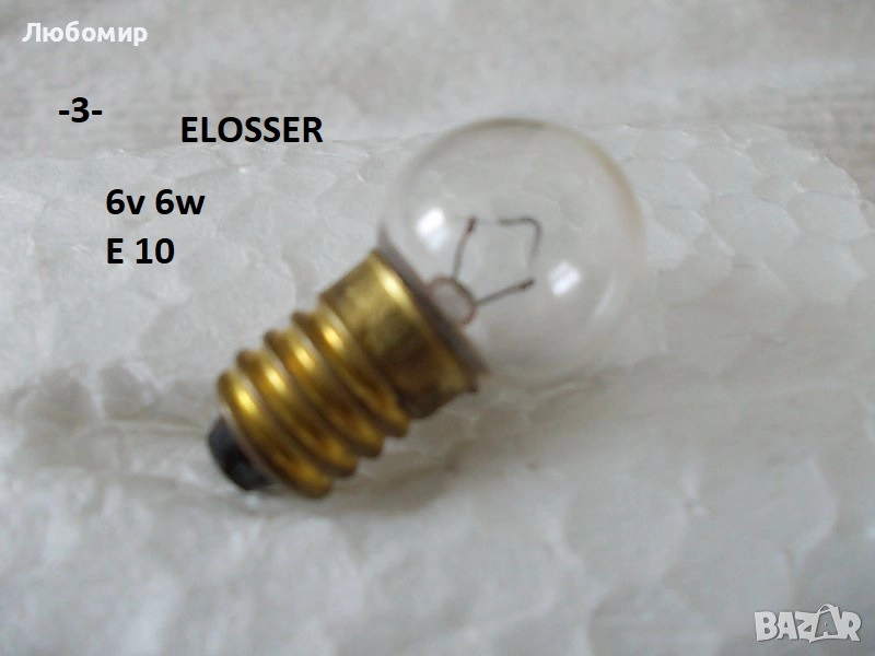 3. 6v 6w E10 ELOSSER - неизползвано - 1 бр. х 6 лв.