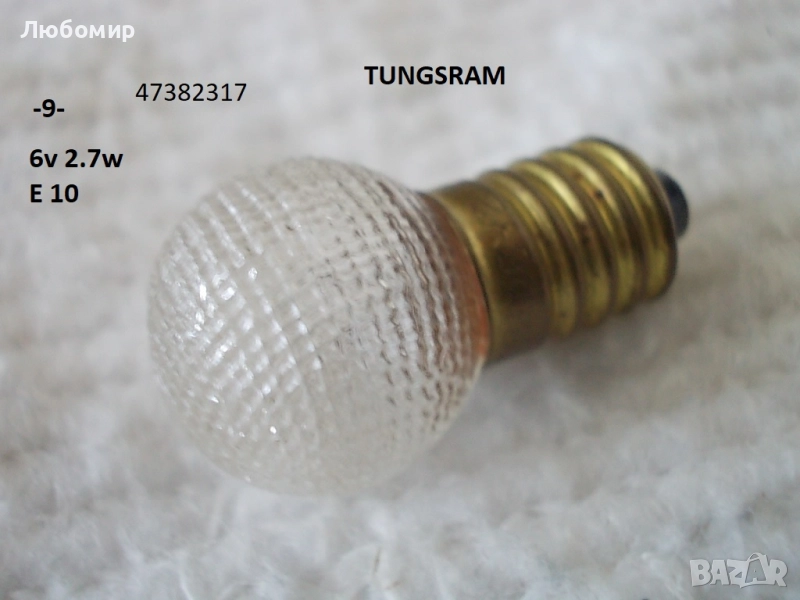 9. 6v 2.7w E10 Tungsram - мат релеф - неизползвано - 1 бр. х 4 лв.