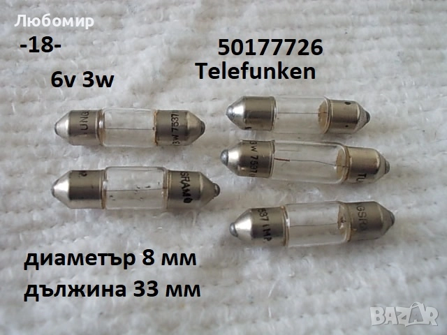 18. 6v 3w Telefunken - софитна - неизползвано - 5 бр. х 2 лв.