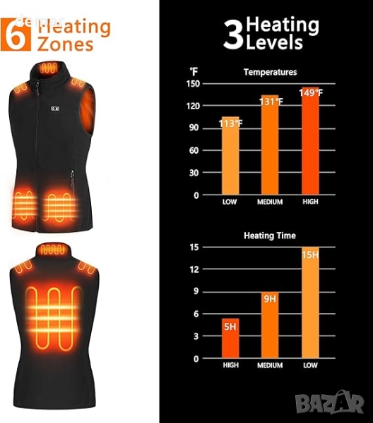 Този дамски отопляем елек е снабден с батерия 7.4V 16000mAh с три регулируеми нива на топлина и двойни интелигентни превключватели, контролиращи отделни зони за отопление за корема, гърба, раменете и врата. Той предлага до 25 часа топлина в зависимост от настройките, осигурявайки надежден комфорт за дейности на открито като ски, къмпинг, туризъм или каране на мотоциклет. Меката поларена подплата подобрява изолацията, осигурявайки топлина дори в студени условия. Проектиран да насърчава по-добрата циркулация и цялостния комфорт, той е идеален практичен подарък за семейство, приятели или колеги през студените месеци.