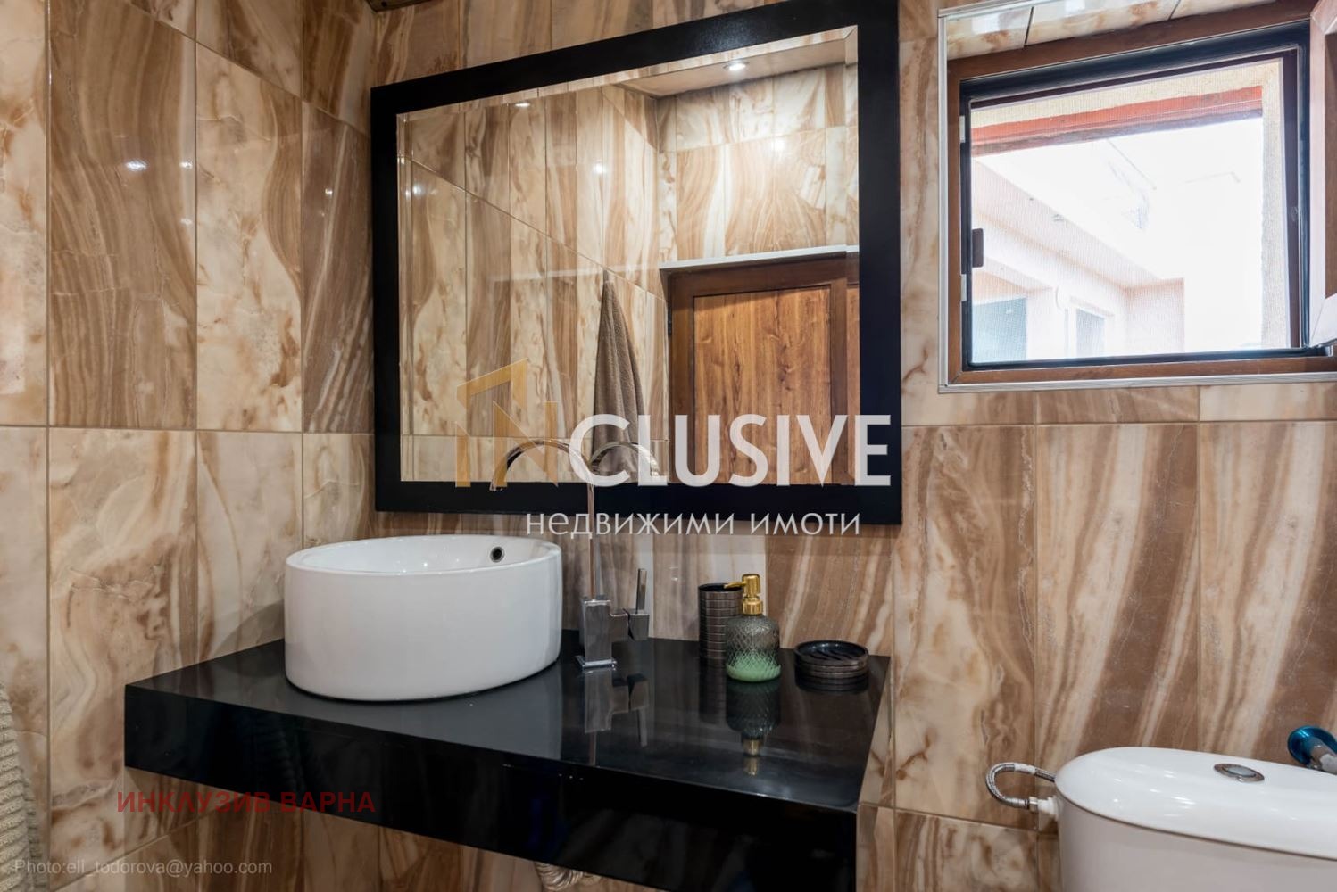 - Стилна баня с висококачествени довършителни материали и съвременни удобства.