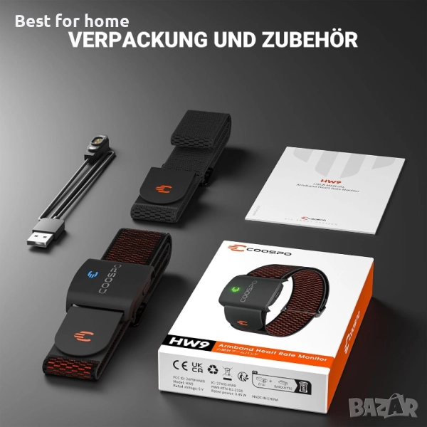 Включени компоненти 1 x кабел за зареждане, 1 x сензор за пулс, 1 x ръководство за потребителя (английски език не е гарантиран), 2 x ластици