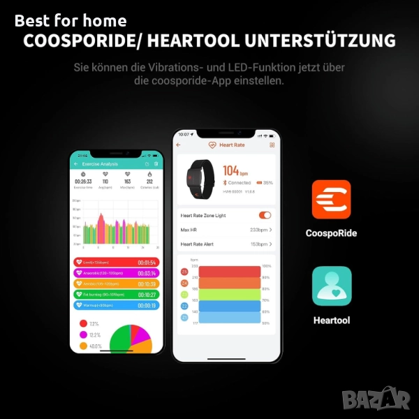Поддръжка на регулиране на максималната сърдечна честота: Приложението Heartool/CoospoRide ви позволява да регулирате истинската си максимална стойност на сърдечната честота с HW9, така че вашата истинска зона на сърдечна честота да ви позволи да оптимизирате нивата си на интензивност в точния момент. (Стандартната максимална сърдечна честота е 200 удара в минута)