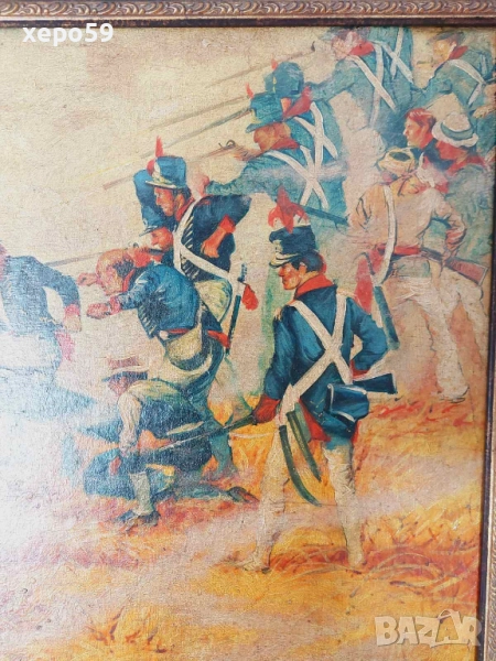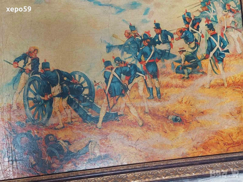 Предлагам прекрасна картина с батална сцена изобразяваща Наполеоновата войска нарисувана от френския художник Henri George's Chartier.