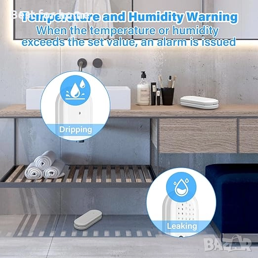Точно измерване на влажност и температура: точно измерване на влажност и температура в околната среда. Вграденият температурен сензор има диапазон на измерване от -40°C до 60°C, докато сензорът за влажност покрива диапазон на измерване от 1% RH до 99% RH. Точността на температурата е ± 1 °C, точността на влажността е ± 0,5% RH. Данните се актуализират на всеки две минути и половина, за да се осигури най-висока точност. Поддържа 2.4G Wi-Fi, не е съвместим с 5G.