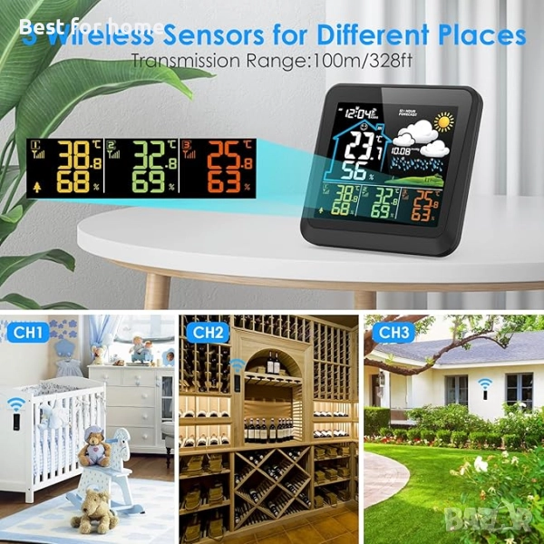 onlyfly Безжична метеорологична станция с 3 външни сензора