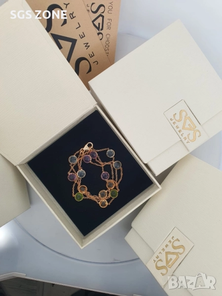 Сребърни колиета с топаз, аметист, перидот и цитрин, позлатени → Обява 52277882