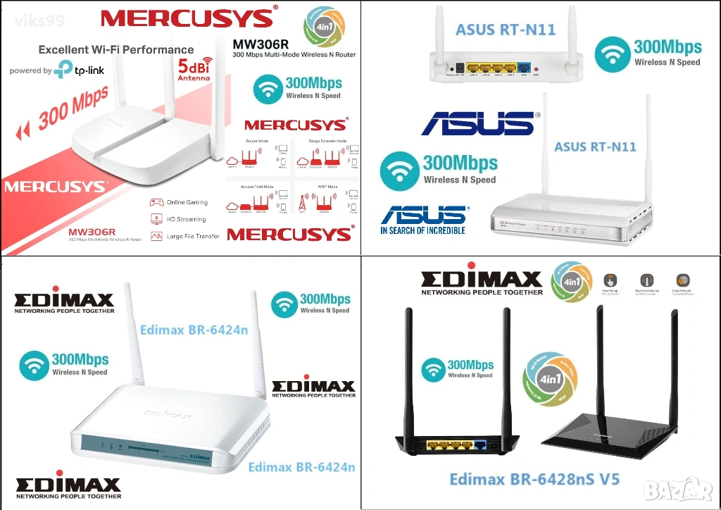 Безжичен мултирежимен рутер Mercusys MW306R N 300 Mbps. Стабилен Wi-Fi за вашето ежедневие - MW306R осигурява бързи и стабилни връзки, които да отговорят на всичките ви мрежови нужди със скорости до 300 Mbps. По-широко покритие - Оборудван с три външни антени с висока печалба, за да доставя силни Wi-Fi сигнали до всеки ъгъл на вашия дом. Мултирежим - Четири режима в едно устройство, за да задоволи всички сценарии на приложение. - 7 EURO