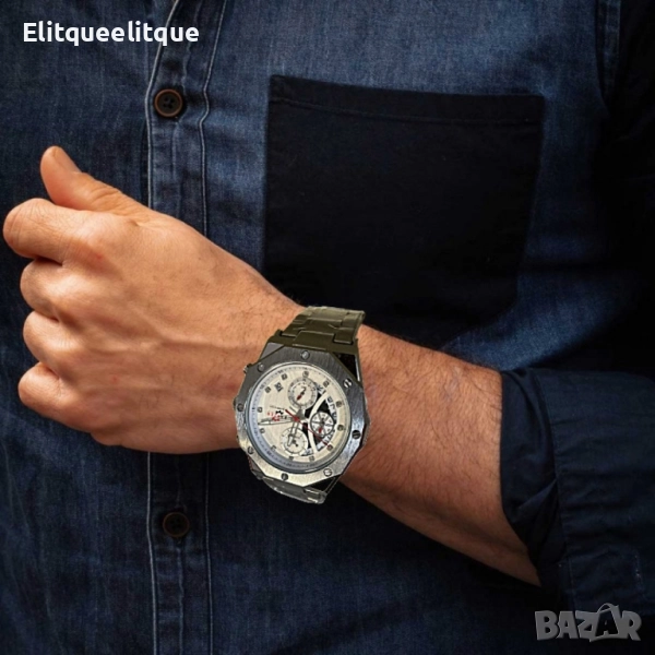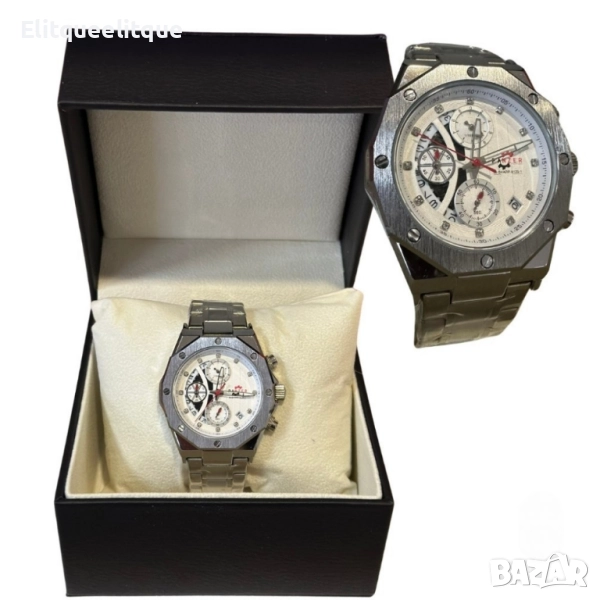 Марка: LEIYI; Водоустойчив часовник Четирите стрелки работят Материал на корпуса: Неръждаема стомана с позлата; Материал на каишката: стомана; Стъкло: Закален минерален кристал; Циферблат: Черен с арабски цифри и открита механика; Водоустойчивост: Устойчив на пръски (не е подходящ за плуване); Гаранция: 12 месеца.