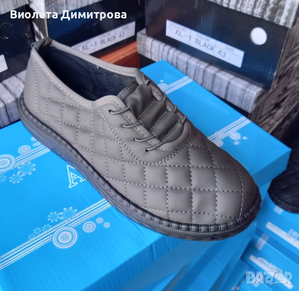 Много меки и удобни дамски обувки, направени от еко кожа с ластични връзки и еластична подметка