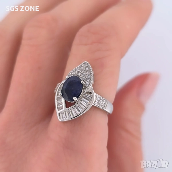 сребърен пръстен с естествен син или жълт сапфир, рубин → Обява 52278556