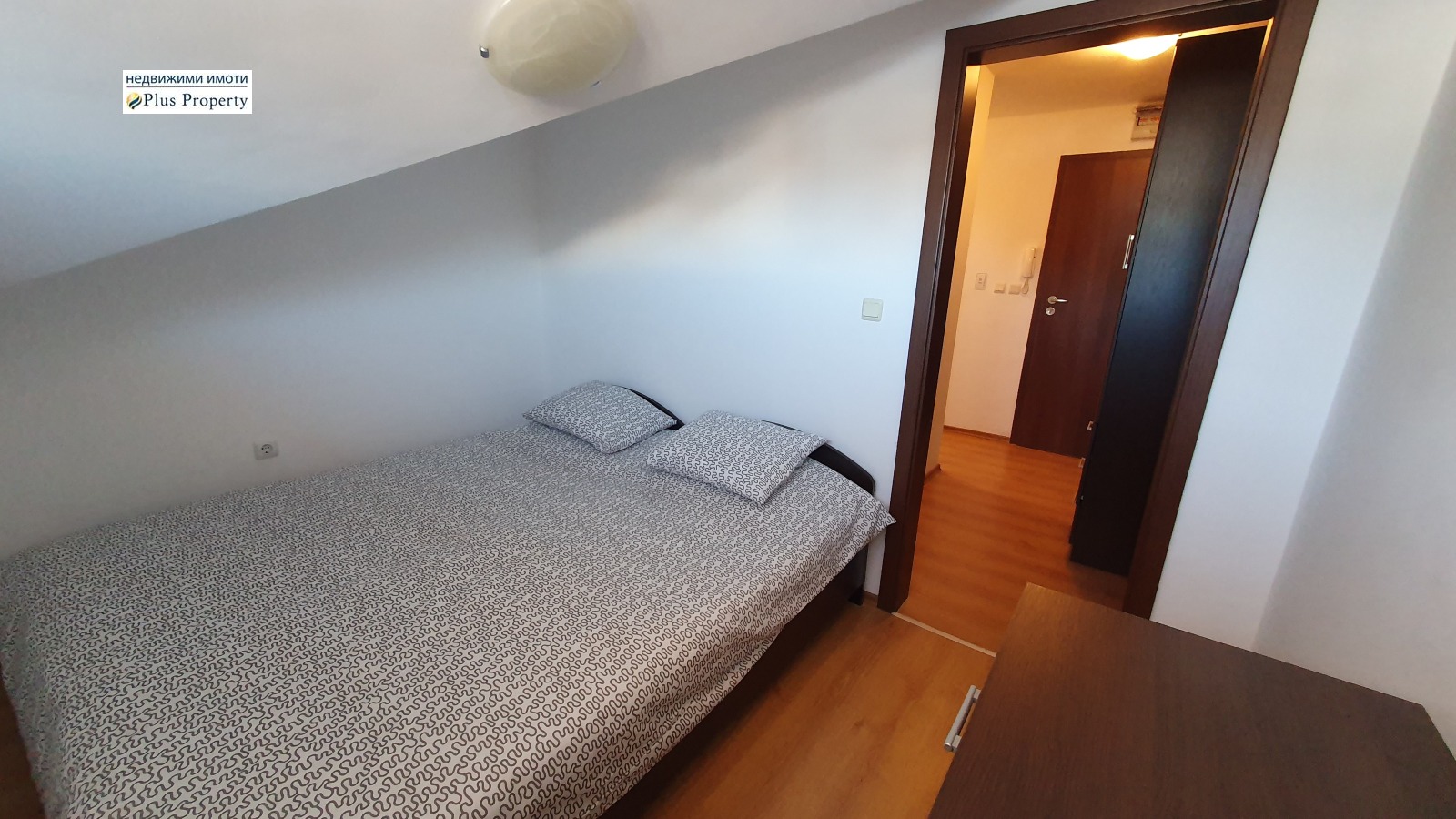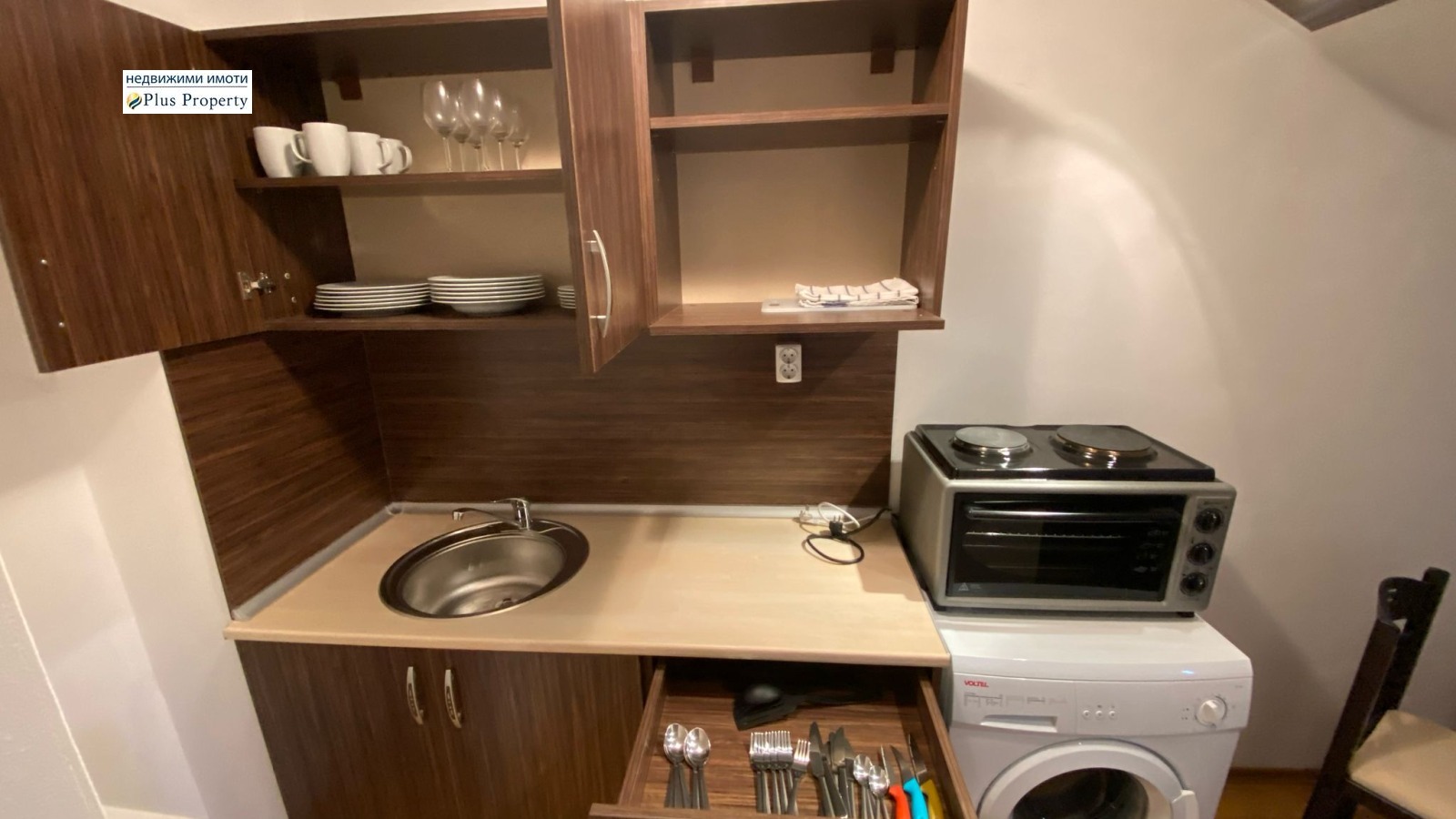Апартаментът се състои от малко входно антре с гардероб, хол с кухненски бокс, оборудван с фурна, хладилник и пералня, маса за хранене със столове и разтегателен диван. Спалнята е обзаведена с двойно легло и скрин. Банята е оборудвана с душ, тоалетна, мивка и бойлер.