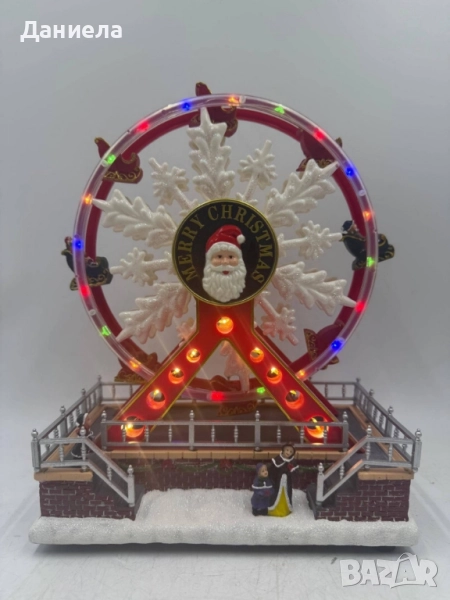 Ако коледната ти украса изглежда обикновена, това въртящо се виенско колело с музика и LED светлини ще внесе истинска празнична магия у дома! Колелото се върти плавно, свети в ярки цветове и свири класически коледни мелодии, създавайки уют и настроение. С внимание към всеки детайл – от усмихнатия Дядо Коледа до малките фигурки и снежните елементи – тази декорация ще се превърне в любим акцент за празниците. Подходящо за дом, офис или витрина. Коледа оживява с Merry Christmas Ferris Wheel! Размери на продукта: 23*14*28 см.; Нетно тегло на продукта: 900 грама.