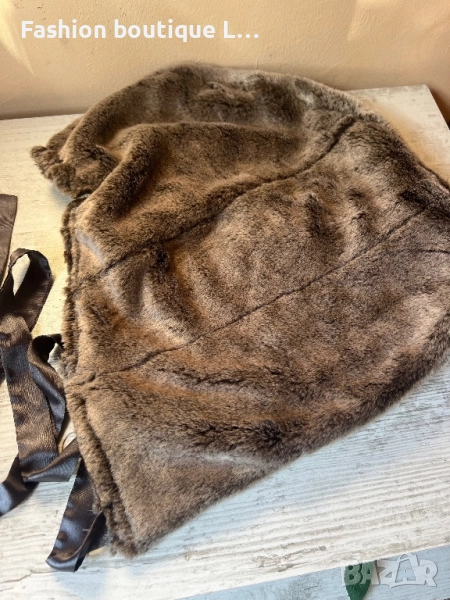 Кафява пухена дамска качулка със сатенени панделки 🤎 → Обява 52278813