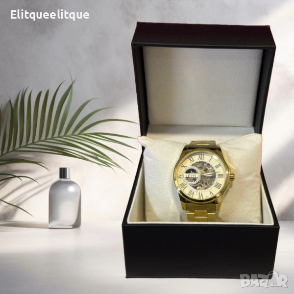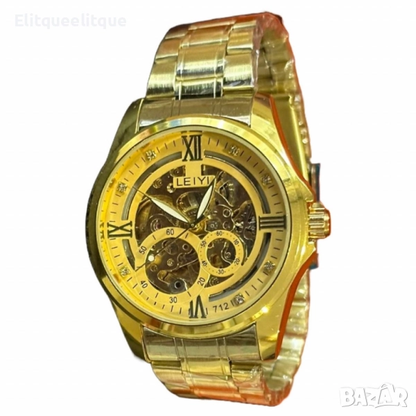 Златист мъжки часовник LEIYI с модерен дизайн циферблат