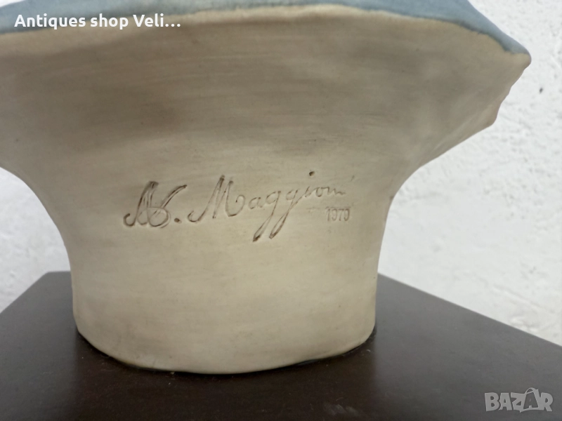 Красив колекционерски бюст изработен от бисквит-порцелан върху дървен постамент и подписан от автора. Перфектно състояние. Предлагаме доставка с Еконт и лично предаване за градовете Велико Търново, Русе и Сливен! Височина-26см.