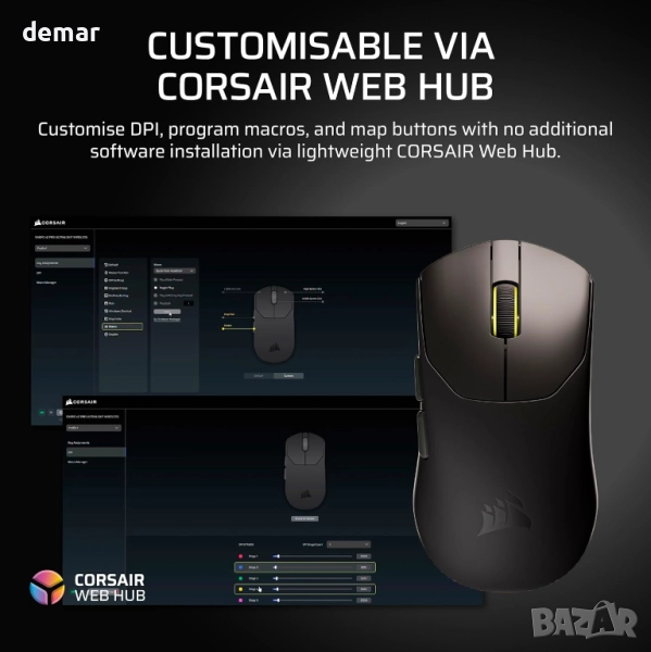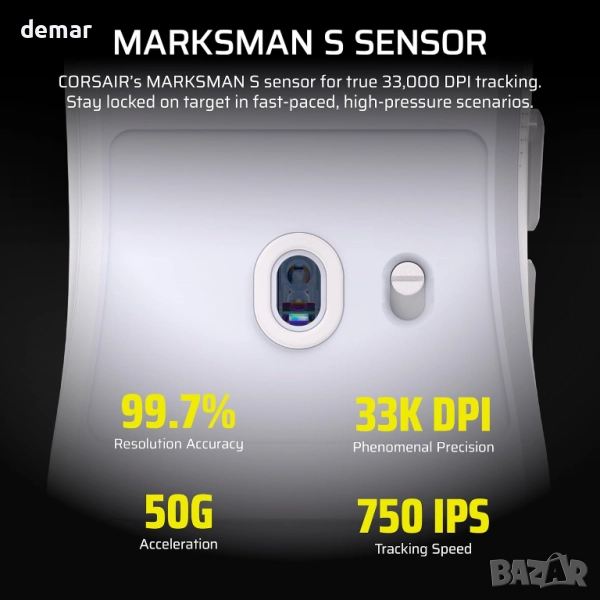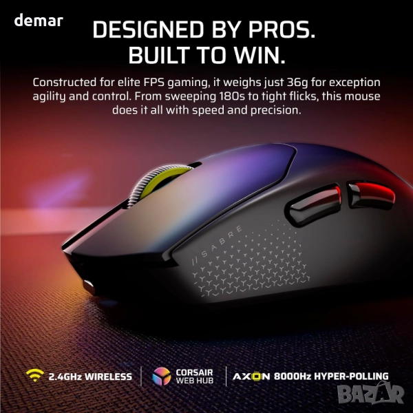 Corsair SABRE v2 PRO FPS безжична геймърска мишка–33 000 DPI, 36 грама