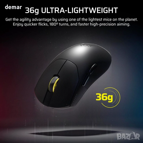 Проектирана за елитна FPS производителност, тази ултралека 36 грама мишка предлага изключителна пъргавина и контрол за прецизни и бързи движения. Нейната 8000Hz хипер-пулинг осигурява почти мигновена реакция, докато сензорът MARKSMAN S осигурява изключителна точност и постоянство на проследяване дори при интензивен геймплей. Специално настроените механични превключватели осигуряват ясна тактилна обратна връзка и дълготрайна надеждност, поддържайки до 100 милиона кликвания. С до 70 часа безжичен живот на батерията с едно зареждане, тя е създадена да се справя с продължителни сесии без компромис.