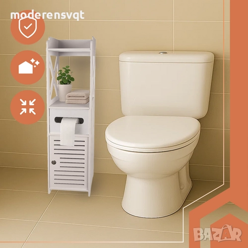 Шкафът предлага практично място за съхранение, което винаги липсва в банята, можете да съхранявате в него кърпи, тоалетна хартия, козметика или почистващи препарати