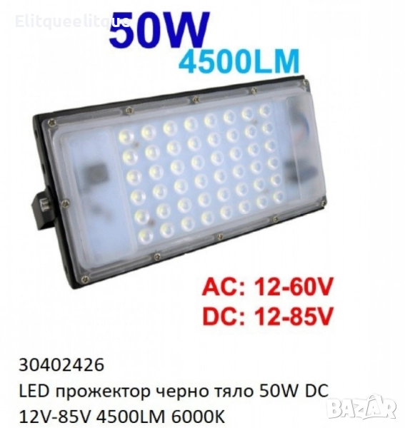 Водоустойчив LED прожектор 50W DC 12V-85V 4500LM 6000K