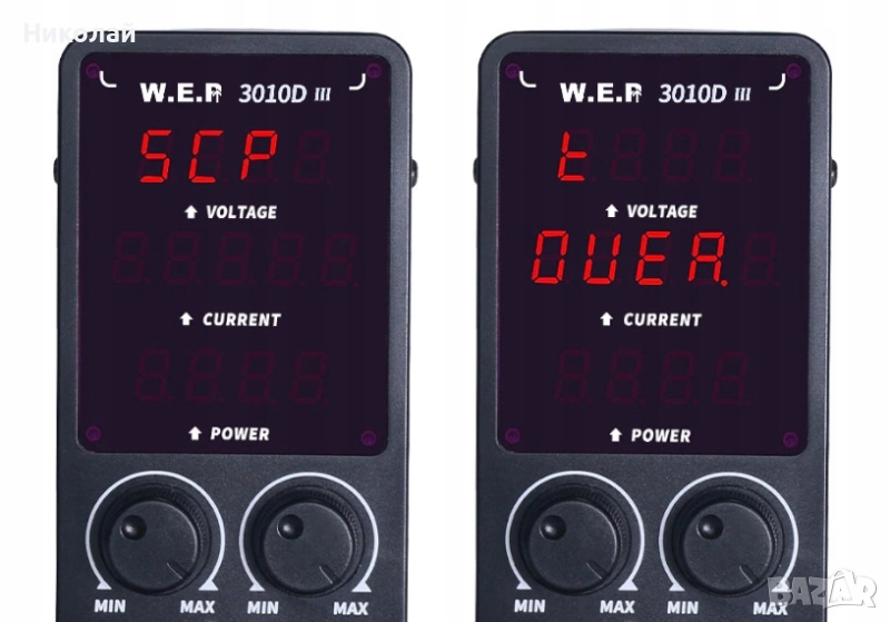 Цифров дисплей: показва едновременно напрежение (V), ток (A) и мощност (W)
