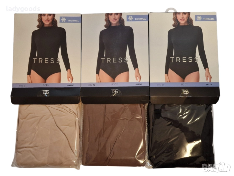 Термо боди с бикина,налично в три цвята-телесно,шоколадово кафяво и черно.Реални размери - M,L,XL и XXL.Топ качество, на нормална цена!