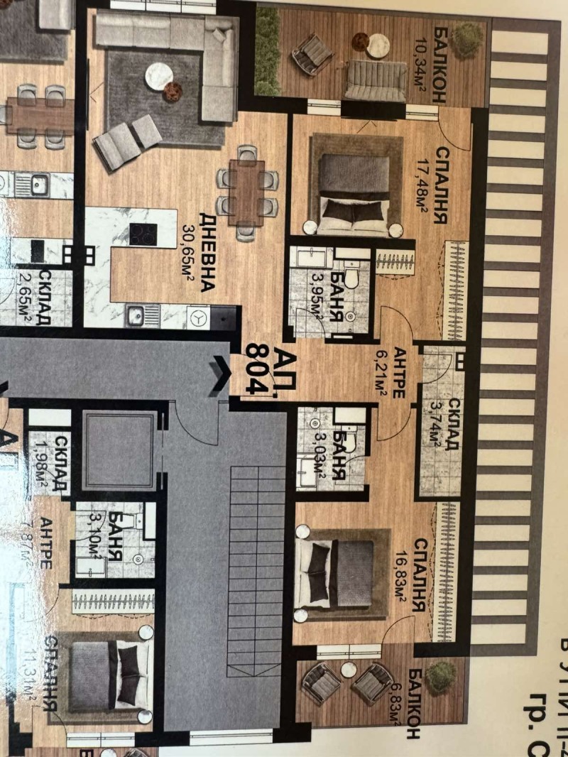 Михайлова имоти предоставя на вашето внимание за продажба тристаен апартамент ново строителство, разположен в кв. Казански, гр. Стара Загора. Жилището се намира на осми последен жилищен етаж сграда с Акт 16 от 2021 г., изпълнена от утвърден строител и с луксозно завършени общи части. Апартаментът е с чиста площ от 108 кв.м. и се отличава с функционално разпределение и две просторни тераси с излаз от двете спални . Изложението е север,изток,юг, което осигурява приятна светлина и комфорт през целия ден. Състои се от голяма и светла всекидневна с кухненски бокс, две самостоятелни спални, баня с тоалетна и отделно складово помещение. Имотът е подходящ както за семейно жилище, така и като инвестиция. Сградата се намира в предпочитан район в близост до парк Артилерийски, на пешеходно разстояние от центъра на града, спирки на градски транспорт, училища и детски градини. На партерното ниво са разположени хранителни и нехранителни магазини, които осигуряват удобство в ежедневието.