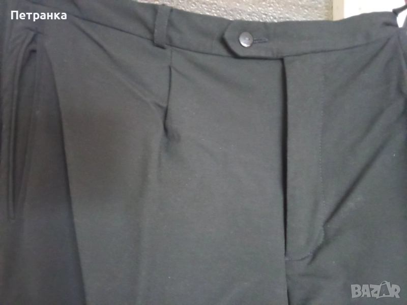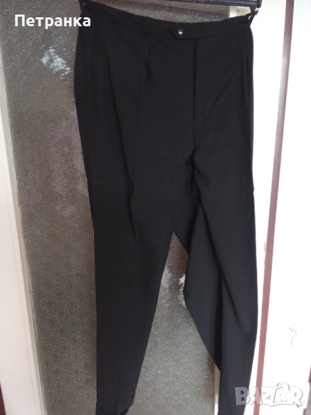 Снимки 4 и 5 - Официален български панталон на модна къща" Капри" от черна плътна еластична коприна,. Размер 52 ( XXL ), талия 130, дължина 114 см. Ползван еднократно от съпруга ми за сватба.