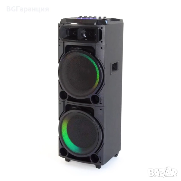 Професионална караоке озвучителна система с два мощни 10-инчови субуфера, съчетаваща високо качество на звука, ефектно LED осветление и богата функционалност. Подходяща е както за домашна употреба, така и за събития на открито, заведения, фирмени партита, презентации или други събирания, изискващи силен и плътен звук.
